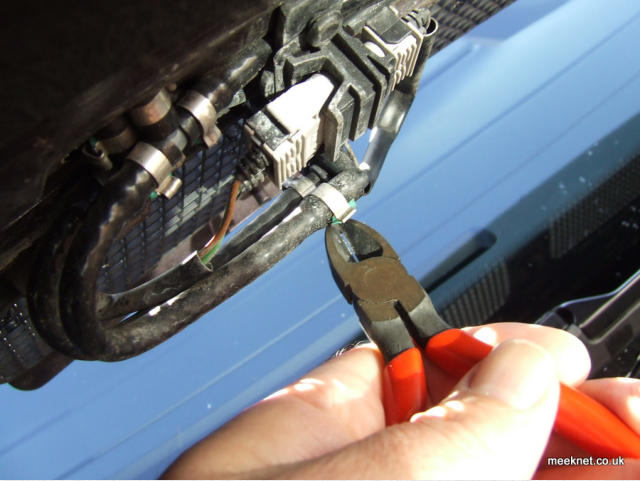 Disconnect the loom as shown here and then remove the expanding rivet, the right-hand side of the connector remains in the
