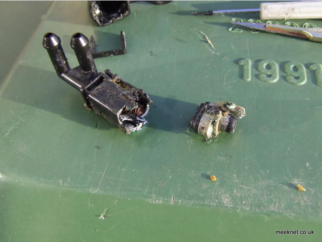 Let's face it, that wasn't going to be cleaned and working again! The heater connection has disintegrated and the