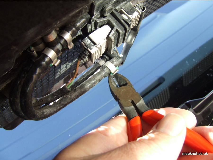 Disconnect the loom as shown here and then remove the expanding rivet, the right-hand side of the connector remains in the