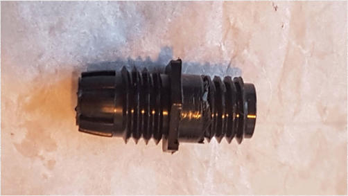 We are now going to glue the cable gland in the place of the broken bobbin - so use Araldite Rapid and wipe it around the threads on the right of the gland as shown on the left - and then push it into the housing - and then leave it like that for around an hour which is long enough for the Araldite to cure.