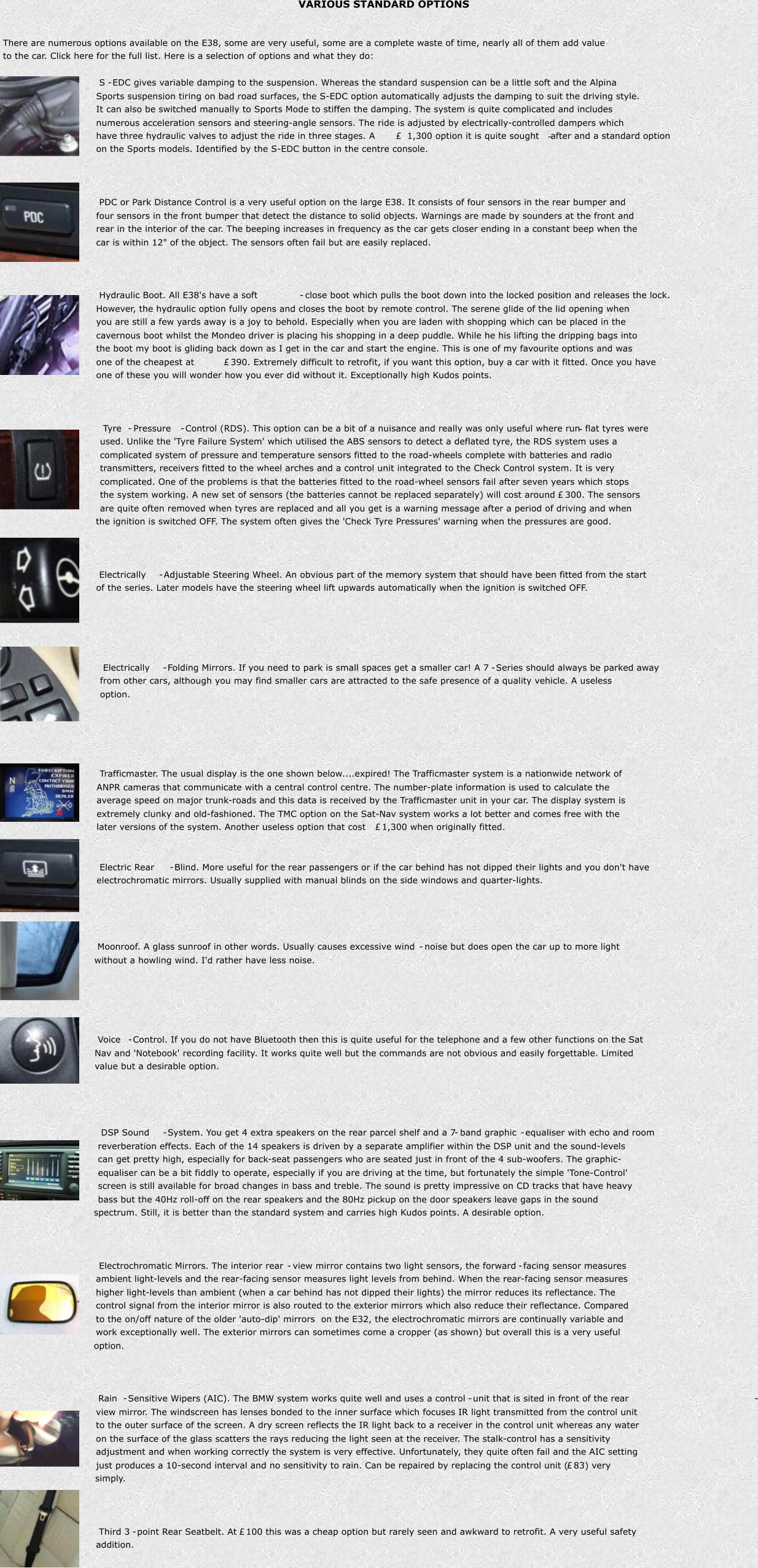 The BMW E38 7-Series are excellent cars and excellent value at the time of writing (2008 and updated in 2009). Nearly all the E38's fall outside the proposed