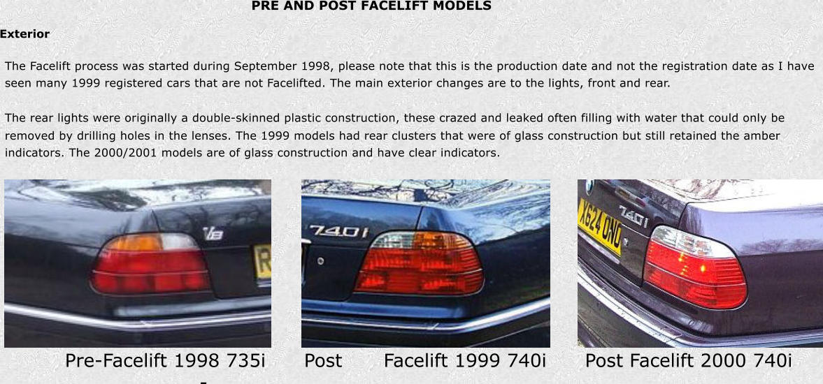 Over the life of the E38 there have been many changes both to the exterior and the engines with three main engine types (I-6, V8 and V12) and a number of variants
