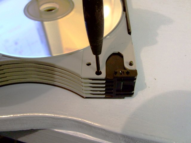 So, lift the first platter up and out and then remove the hinge pin: