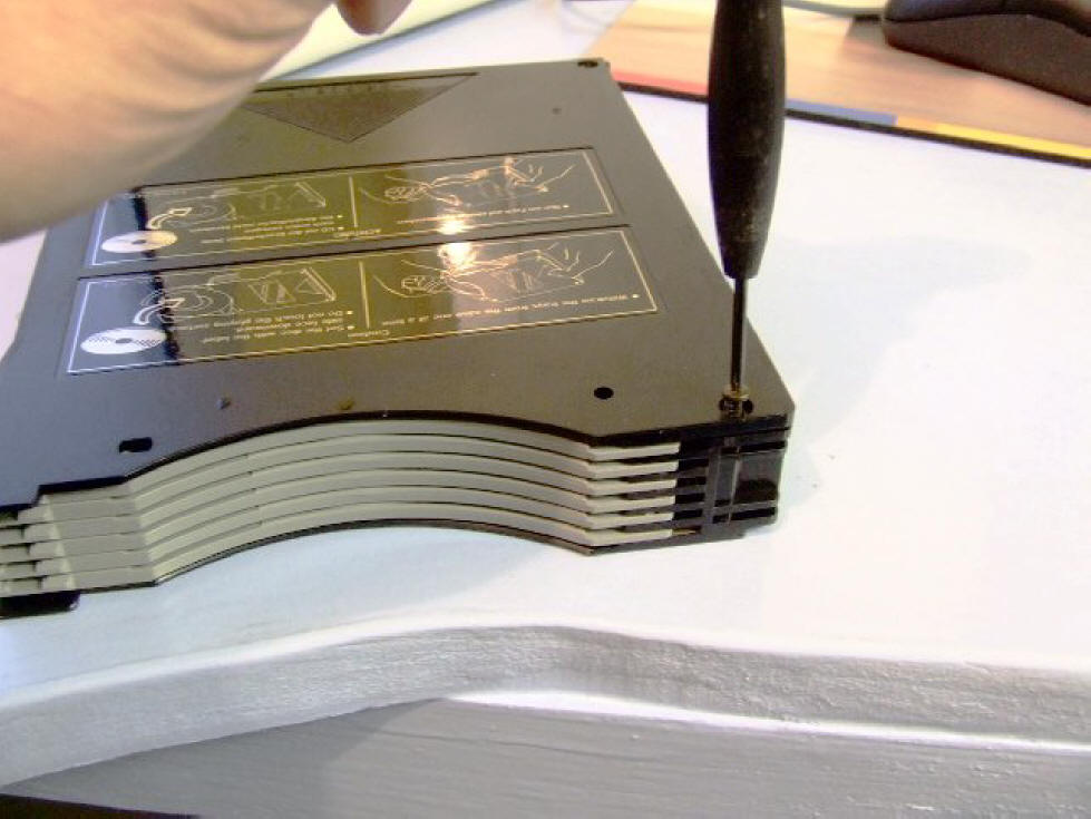 OK, hoik the cartridge out of the changer and remove the three screws: