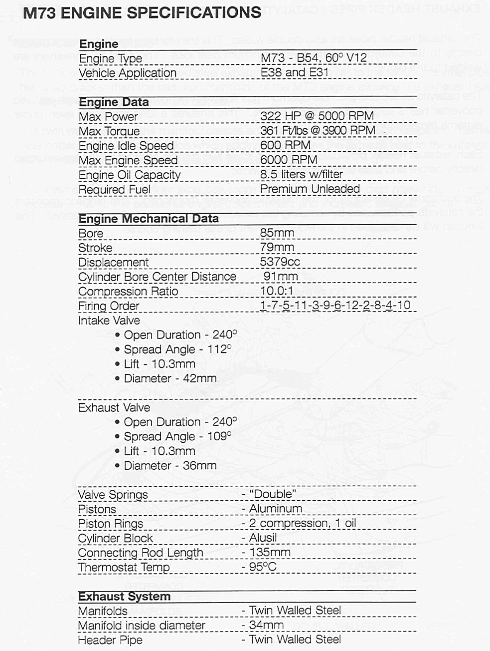 Timm's BMW Information - The M73 V12 Engine - E31 and E38